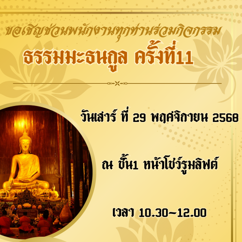 วันเสาร์ ที่ 29 พฤศจิกายน 2568 เวลา 09:00 – 16:00 น. ณ ห้องประชุมชั้น 4