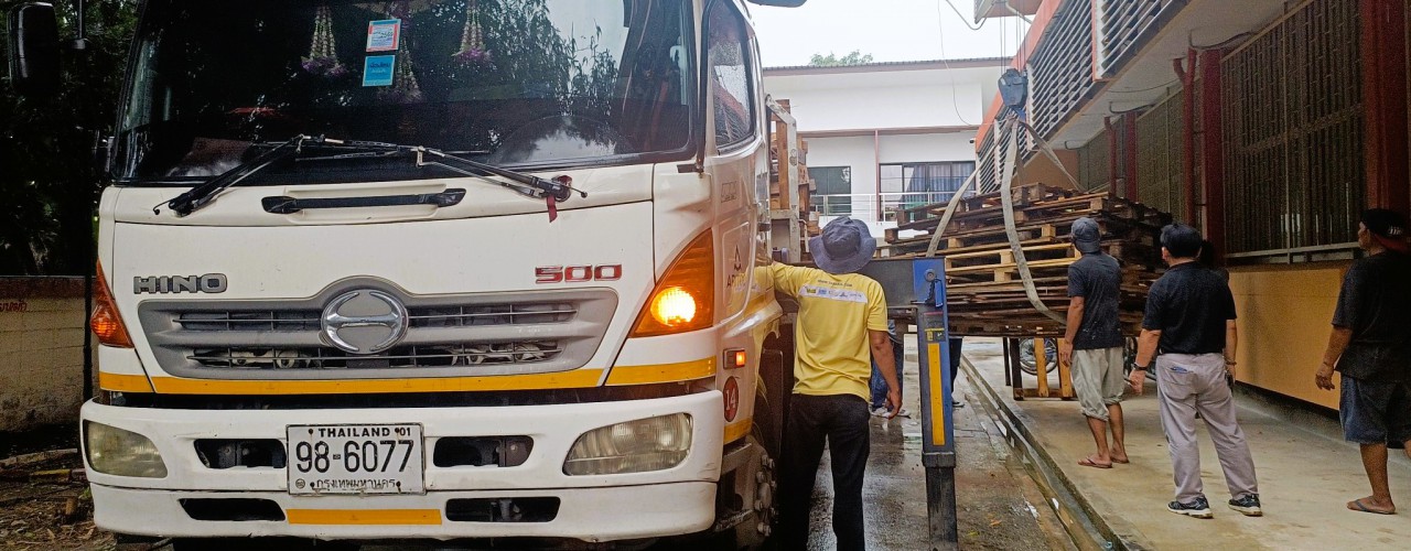 เมื่อวันที่ 10,12 พฤศจิกายน 2568 เราได้ดำเนินการ บริจาคส่งมอบไม้ลัง,ไม้พาเลทและสี จากโรงงาน เพื่อส่งมอบให้