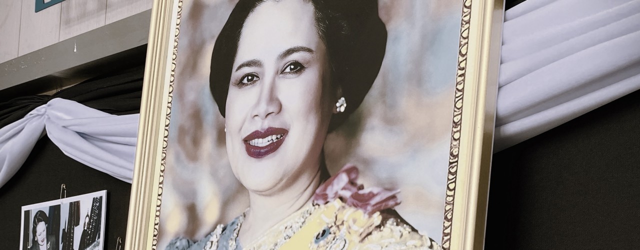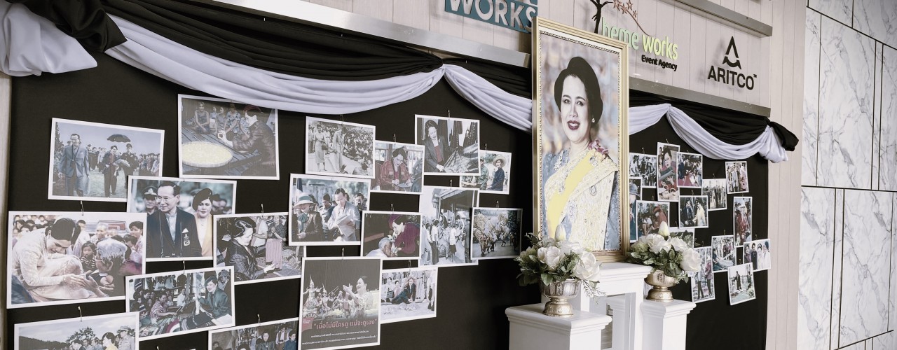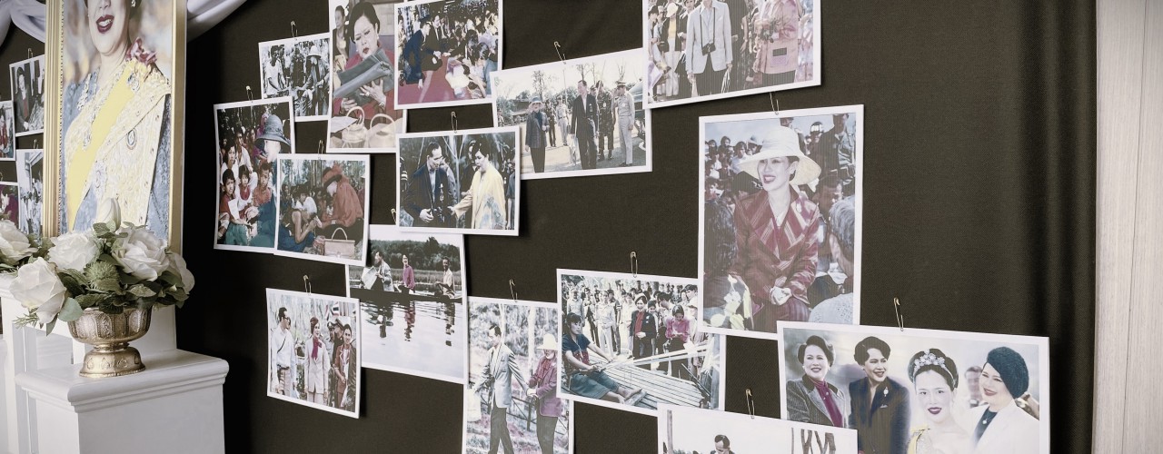 photos of Her Majesty Queen Sirikit, the Queen Mother's royal duties, along with a sentimental message or a poem in remembrance of Her Majesty.