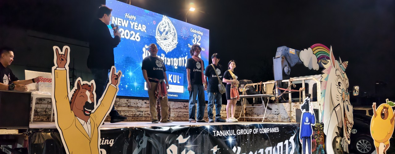 January 07, 2026Happy New Year ! TANAKUL Group of Companies Celebrating 32 Years of Service. Stepping into the new year 2026, the TANAKUL Group of Companies welcomes the new year under the concept of “TANAKUL: Experienced and Skilled – The ‘M. M.’ (Energetic Horse) Theme,” signifying strength, expertise, and steady progress, along with the energy, unity, and determination of the TANAKUL people. On Saturday, December 27, 2026, the day began with a merit-making ceremony to bring good fortune to all employees. This was followed by a #CSR (Corporate Social Responsibility) cleanup activity, and concluded with a celebratory party at #MangkonSeafoodsBuffet. Special gifts were given out, including prizes for inventions and costumes in the “M. M. (Energetic Horse) Theme,” creating a fun, warm, and joyful atmosphere. Thank you to all employees for your collective efforts and for being a vital force in driving TANAKUL forward over the past 32 years. May the new year 2026 be a year of success, progress, and happiness for everyone.